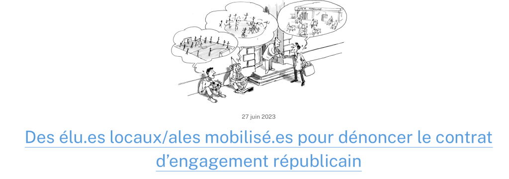 ^Ce texte se dit “Contrat d’Engagement Républicain” mais un contrat c’est fait pour engager 2 parties : vous allez faire cela, et nous, en échange, on va faire cela. Avec le CER, l’État vous demande d’appliquer quelque chose sans prendre aucun engagement. L’engagement souscrit est unilatéral. Et cela change tout.
